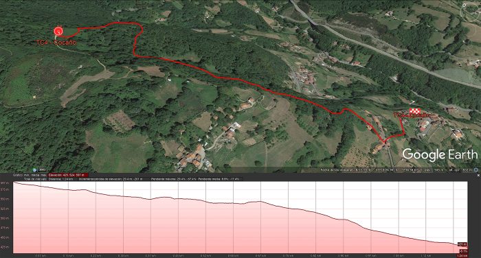 Acceso: A la parte final desde Cocañín (pincha para llegar), ya que finaliza frente a la iglesia. Tambien se puede acceder a la parte intermedia del tramo (pincha para llegar), accediendo por el pueblo de Cocaño.