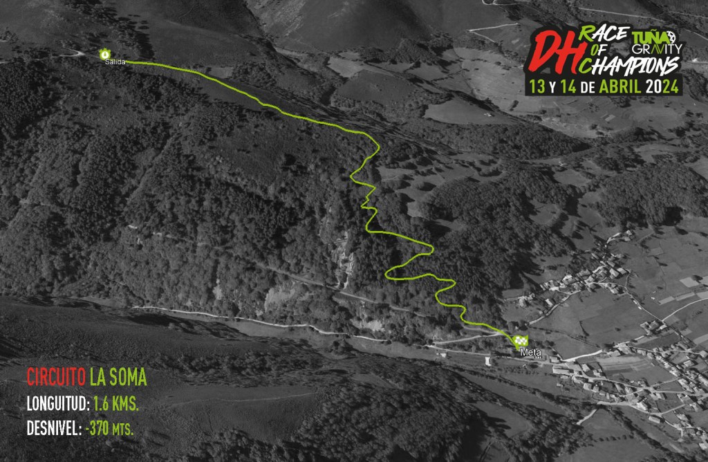 Comenzamos el DH La Soma desde lo alto de plataforma de salida para encarar la primera parte del circuito, unos 400 metros de zona «flat out» plagada de speed-jumps y dobles para enlazar. A continuación nos encontramos con la zona más rápida del circuito con curvas abiertas y enlazadas y trás ellas encontrarnos el primer drop. Trás esto continuamos por una zona de campa, y trás otro pequeño salto natural en un cambio de terreno, encontraremos otra zona rápida con curvas abiertas que desembocan en otro drop, este más alto y con una recepción en caída pronunciada, punto en el que arranca el «heavy metal» que caracteriza a este circuito y que no es otro que su desnivel, que ya no nos abandonará hasta la misma línea de meta.