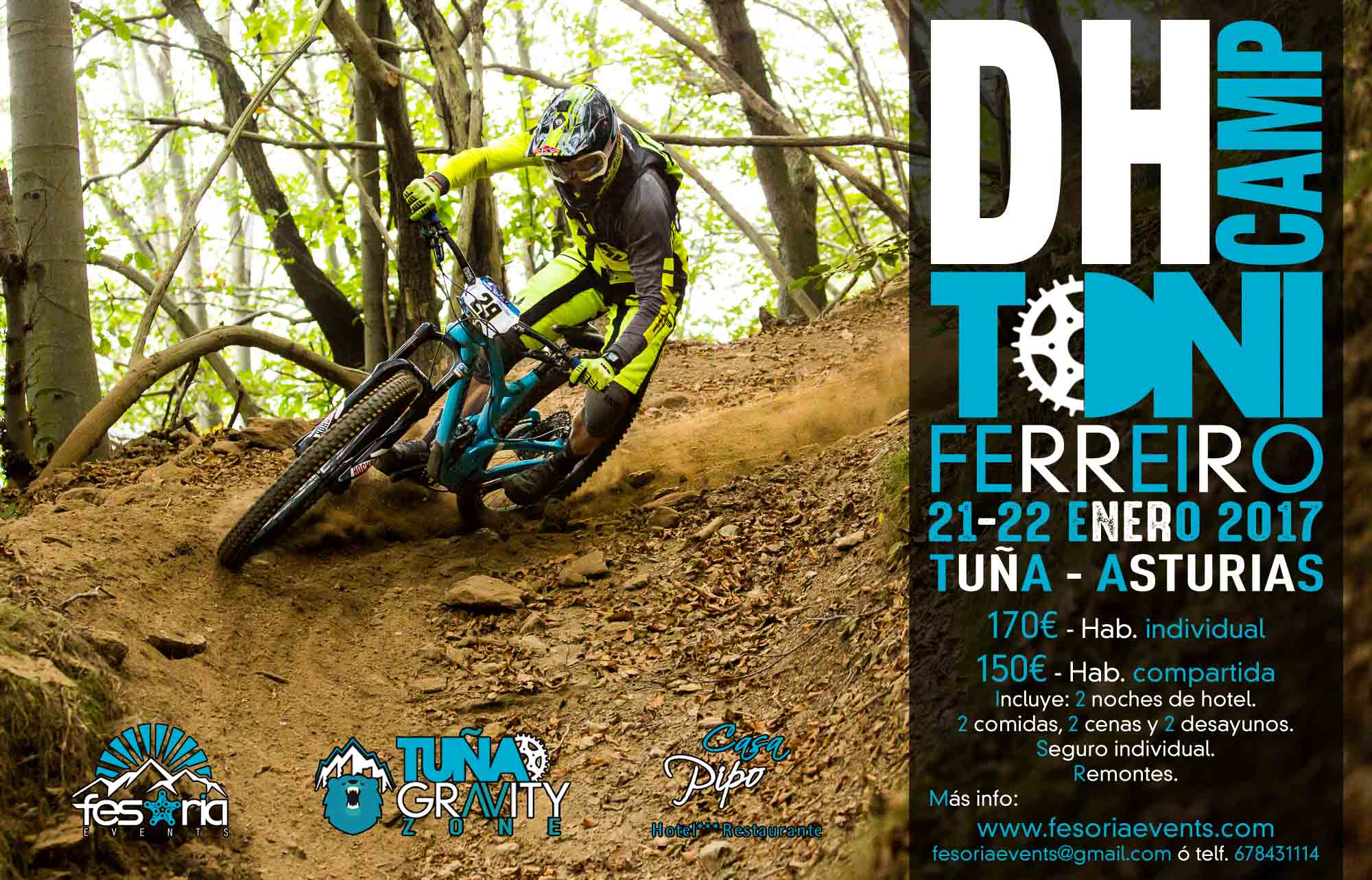 Hace tiempo que ronda nuestras cabezas organizar un Camp de DH para todos y por fín ha llegado el momento de hacerlo realidad. Fesoria Events, en colaboración con Tuña Gravity Zone y el Hotel Casa Pipo, pone a tu alcance un fin de semana de DH de auténtico lujo. Si quieres afrontar la temporada 2017 de la mejor manera posible y ya cuentas con una base en esta práctica, pero quieres perfecionarlo, tienes una cita ineludible.