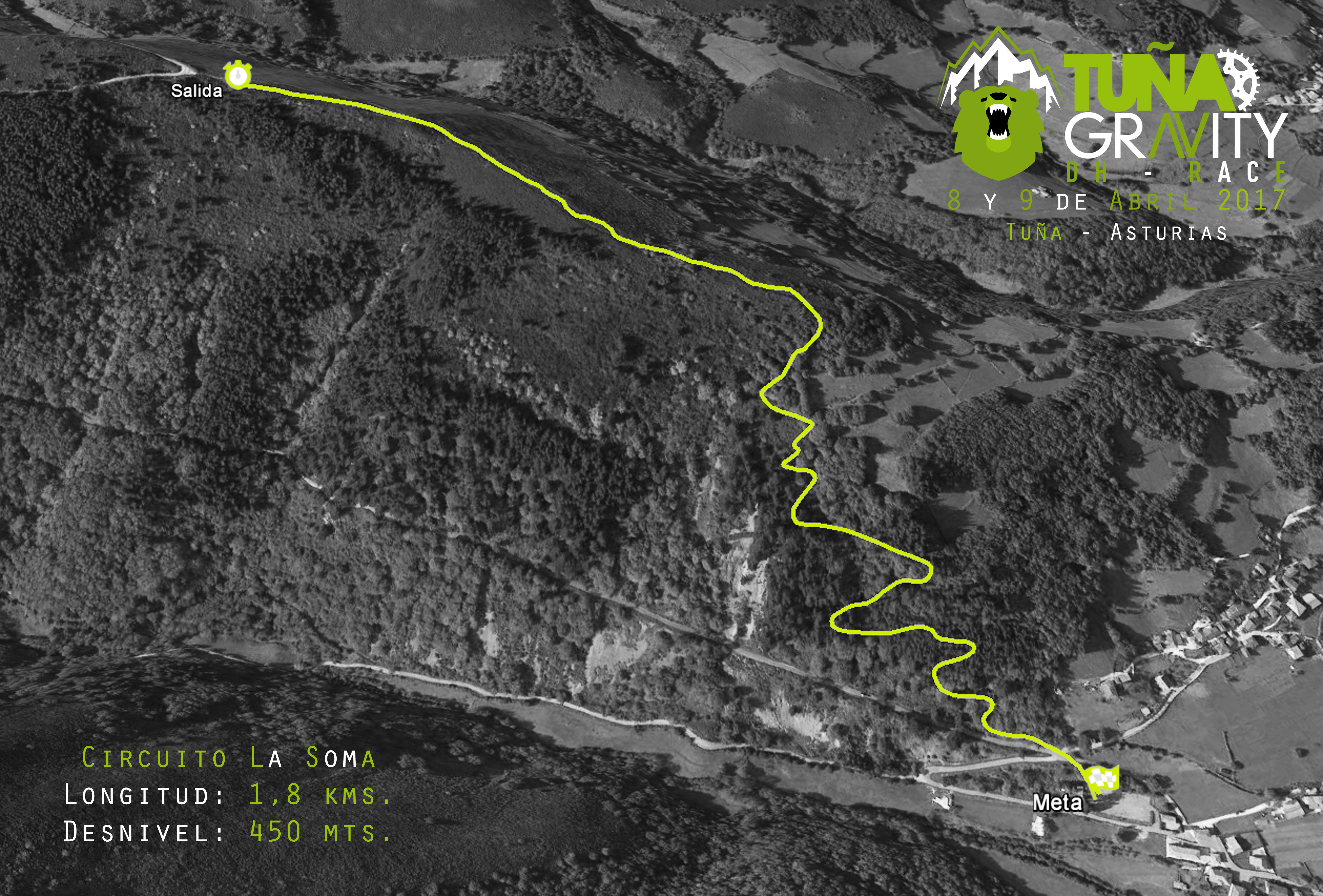 El circuito, conocido como La Soma, lleva una larga evolución desde sus inicios, transformandose casi por completo hace un par de años y retocandose de nuevo a finales de 2016. Dicha evolución ha sido obra de mucha gente, principalmente pilotos del Open asturiano de descenso, que de manera voluntaria ha echado una mano para llegar hasta lo existente y desde aquí queremos agradecer a todos y cada uno de ellos el esfuerzo realizado.